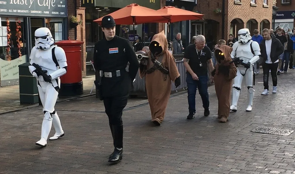 Purely by chance, my visit coincided with a display of some Star Wars costumes. For one day only the streets of Lichfield were patrolled by Imperial Storm Troopers, droids and assorted dodgy aliens. It was a lot of fun and the organisers were especially friendly. The highlight? Watching two Troopers walk around the library ensuring ‘shhhh…’ was maintained. Just brilliant!